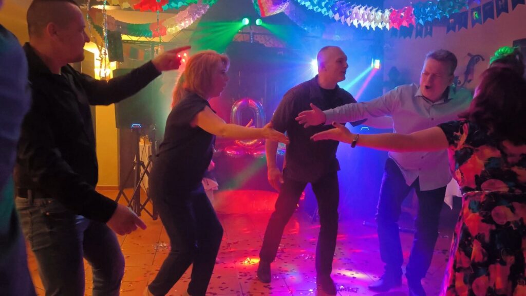 NA MOICH WESELACH I POPRAWINACH NIE ZNAJDZIESZ PRZESTARZAŁYCH, WYMUSZONYCH ZABAW Z POPRZEDNIEJ EPOKI. ZAMIAST TEGO STAWIAM NA SPONTANICZNOŚĆ, DOBRĄ ENERGIĘ I NATURALNY KLIMAT, KTÓRY BUDUJE SIĘ RAZEM Z GOŚĆMI. PARKIET ŻYJE PRZEZ CAŁY WIECZÓR, A ZABAWY TANECZNE, INTEGRACJA I KARAOKE POJAWIAJĄ SIĘ WTEDY, GDY NAPRAWDĘ PASUJĄ DO MOMENTU — BEZ PRESJI, ZA TO Z EFEKTEM, KTÓRY WCIĄGA WSZYSTKICH. 🔥