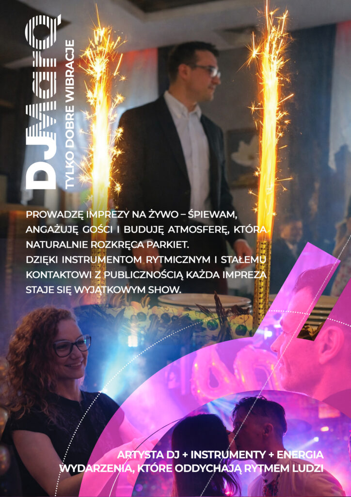 MUZYKA, RYTM, ŚWIATŁO I KONTAKT Z PUBLICZNOŚCIĄ TO MOJA CODZIENNOŚĆ — DLATEGO KAŻDĄ IMPREZĘ TRAKTUJĘ JAK WYDARZENIE SCENICZNE, A NIE ODTWARZANIE PLAYLISTY.